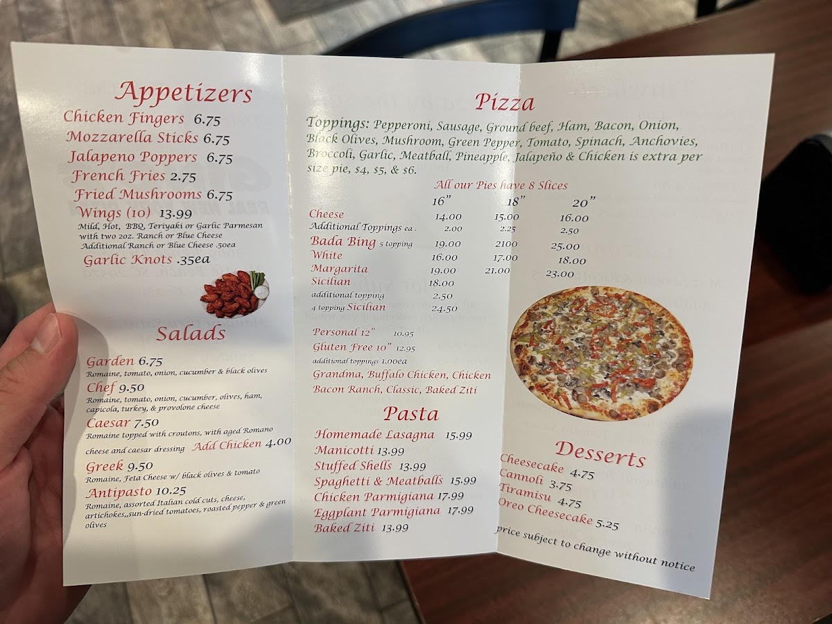 The menu doesn't stop at pizza; Gino's also serves mouthwatering Italian dishes such as lasagna, stuffed shells, and hearty spaghetti with meatballs—an absolute hit among patrons. For breakfast lovers, their oversized breakfast sandwiches are perfect for starting the day off right. Desserts, although not fully detailed on the menu, intrigue with tempting selections displayed in-house.